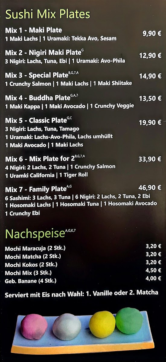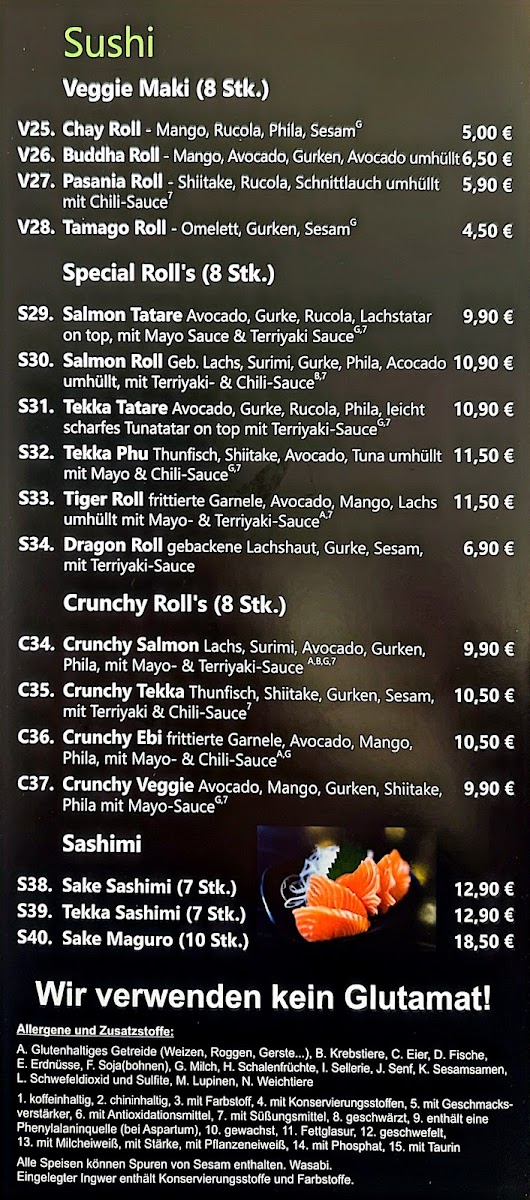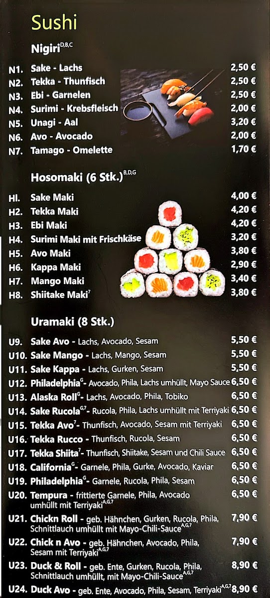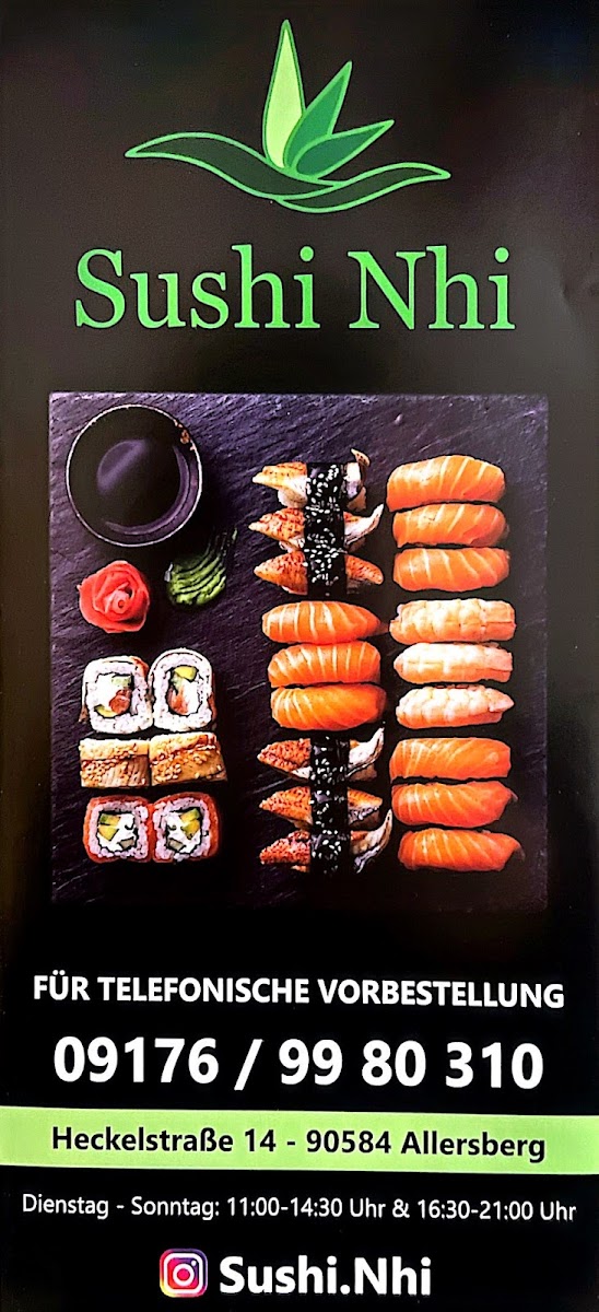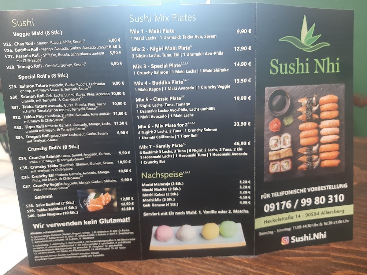 The menu at Sushi Nhi at Heckelstraße 14 in Allersberg offers a refined selection that balances traditional Japanese flavors with creative twists. Standout offerings like Sake Rucola showcase the restaurant’s skill in pairing fresh, high-quality salmon with the peppery bite of arugula, creating a harmonious and visually appealing dish. Each item on the menu demonstrates careful attention to detail, from the presentation to the blend of textures and flavors. The menu’s pricing reflects the premium ingredients without feeling excessive, making it approachable for both casual diners and sushi enthusiasts. Overall, Sushi Nhi presents a menu that is cohesive, flavorful, and thoughtfully curated, leaving a lasting impression through both its signature creations and its dedication to quality.